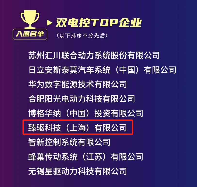 喜報 | 臻驅科技榮獲中國電驅動產業技術創新獎并入選雙電控TOP企業