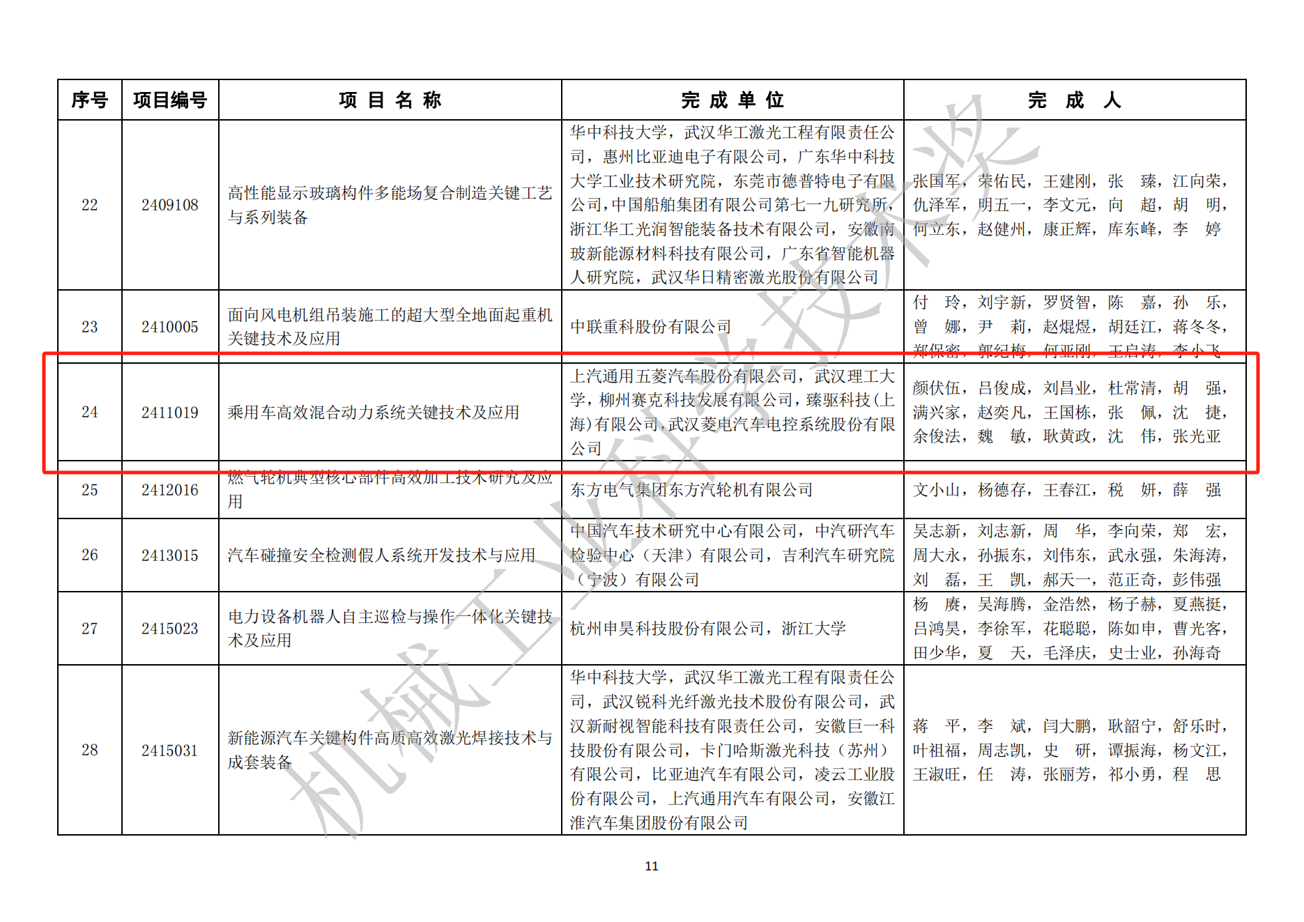 10月23日,中國機械工業聯合會和中國機械工程學會正式公布2024年度機械工業科學技術獎獲獎項目,由上汽通用五菱汽車股份有限公司、臻驅科技(上海)股份有限公司(以下簡稱“臻驅科技”)等共同完成的“乘用車高效混合動力系統關鍵技術及應用”項目榮獲科技進步獎一等獎。